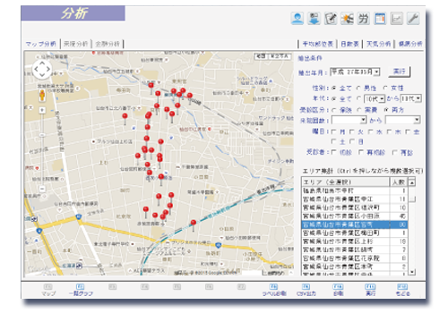 - 院を中心に見ることができ、またエリアを選択することによって地域ごとに把握が可能